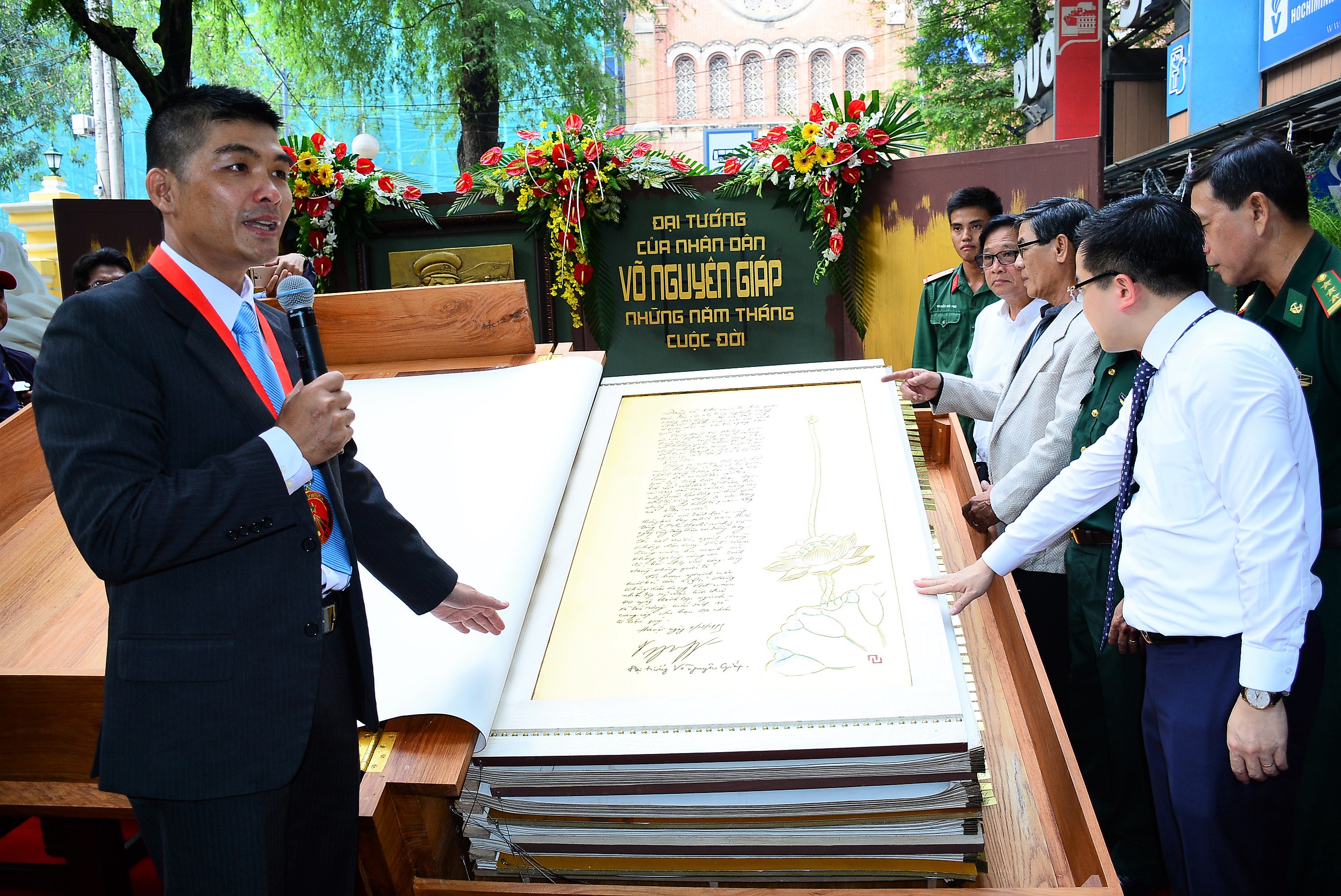 Đặc biệt, Ban tổ chức giới thiệu tác phẩm sách thư pháp chữ Việt “Đại tướng của nhân dân Võ Nguyên Giáp - Những năm tháng cuộc đời” xác lập Kỷ lục Việt Nam của nhà thư pháp Võ Dương.