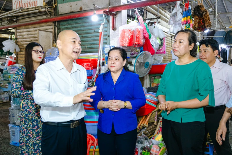 Đại diện các sở, ngành Thành phố; phường Tân Sơn Hòa; chợ Phạm Văn Hai phát động Shopping Season 2025.