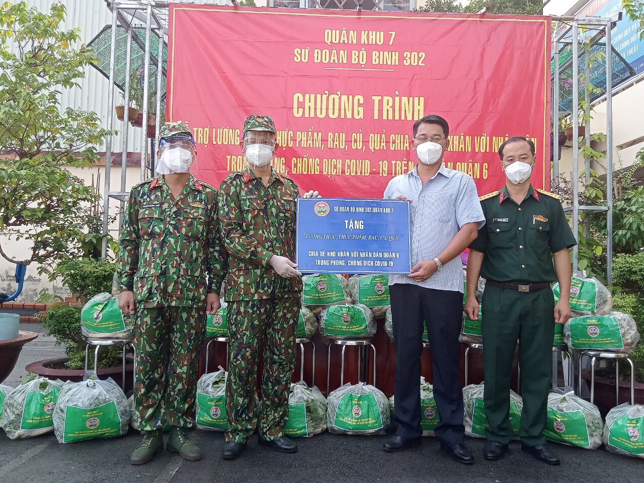(QK7 Online) – Tiếp tục chương trình “Lan tỏa yêu thương, ấm áp tình quân dân”, từ ngày 26 đến ngày 30/8, cán bộ, chiến sĩ Sư đoàn bộ binh 302 đã tổ chức trao tặng hơn 2 ngàn phần quà giúp đỡ Nhân dân có hoàn cảnh khó khăn do đại dịch Covid-19 trên địa bàn các Quận 4,5,6,7,10 và huyện Nhà Bè, Thành phố Hồ Chí Minh chống dịch.
