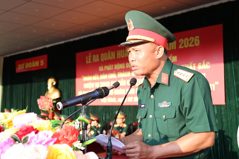 Tại buổi lễ, Đại tá Cao Văn Thắng, Phó Sư đoàn trưởng, Tham mưu trưởng đã quán triệt một số nội dung chính nhiệm vụ huấn luyện năm 2026, trong đó tập trung: Giáo dục cho các đối tượng nâng cao nhận thức về Chủ nghĩa Mác - Lênin, Tư tưởng Hồ Chí Minh; đường lối, chủ trương của Đảng, chính sách, pháp luật của Nhà nước trong lĩnh vực quân sự, quốc phòng; tổ chức huấn luyện theo chương trình cơ bản; ứng dụng công nghệ thông tin vào huấn luyện, kiểm tra, diễn tập, sử dụng phần mềm hỗ trợ xây dựng văn kiện tác chiến. Kiểm tra các bài bắn súng Bộ binh theo giáo trình và huấn luyện các bài bắn nâng cao; Diễn tập từ cấp Trung đội đến cấp Trung đoàn với nhiều hình thức, trong điều kiện thời gian chuẩn bị ngắn. Tổ chức và tham gia hội thi, hội thao các cấp đạt kết quả tốt, an toàn tuyệt đối.