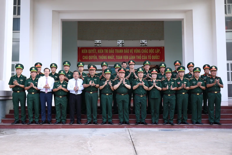 Đại tướng Nguyễn Trọng Nghĩa, Ủy viên Bộ Chính trị, Bí thư Trung ương Đảng, Ủy viên Thường vụ QUTW, Chủ nhiệm Tổng cục Chính trị Quân đội Nhân dân Việt Nam cùng đoàn công tác chụp ảnh lưu niệm với Ban Chỉ huy Bộ đội Biên phòng tỉnh Tây Ninh.