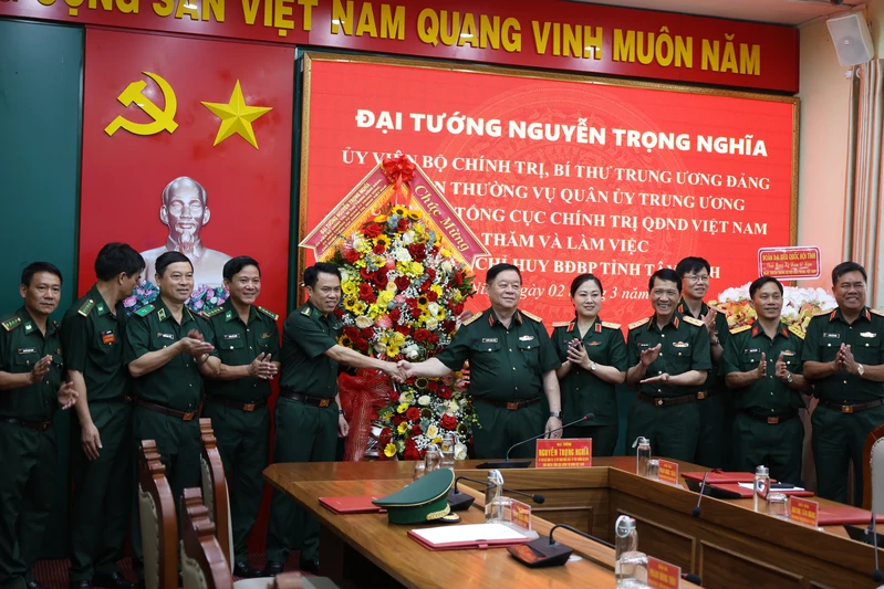 Cùng ngày, Đại tướng Nguyễn Trọng Nghĩa, Ủy viên Bộ Chính trị, Bí thư Trung ương Đảng, Ủy viên Thường vụ QUTW, Chủ nhiệm Tổng cục Chính trị Quân đội Nhân dân Việt Nam cùng đoàn công tác đã đến thăm và làm việc với Ban Chỉ huy Bộ đội Biên phòng tỉnh Tây Ninh.