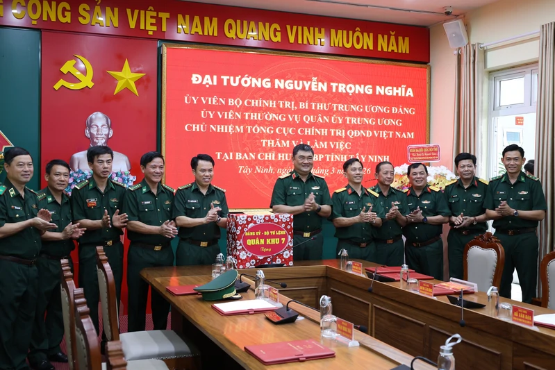 Đại tướng Nguyễn Trọng Nghĩa, Ủy viên Bộ Chính trị, Bí thư Trung ương Đảng, Ủy viên Thường vụ QUTW, Chủ nhiệm Tổng cục Chính trị Quân đội Nhân dân Việt Nam chúc mừng Ban Chỉ huy Bộ đội Biên phòng tỉnh Tây Ninh nhân kỷ niệm 67 năm truyền thống BĐBP (3/3/1959 - 3/3/2026) và 37 năm "Ngày biên phòng toàn dân" (3/3/1989-3/3/2026).
