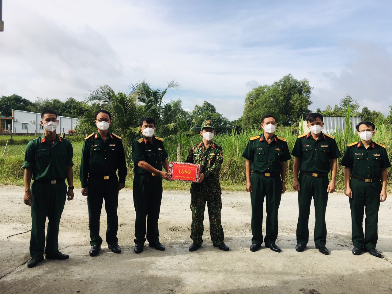 (QK7 Online) - Sáng 14/8, Thượng tá Nguyễn Hồng Cảnh, Ủy viên Thường vụ Đảng ủy Sư đoàn, Chủ nhiệm Chính trị Sư đoàn 5 đến thăm, động viên, tặng quà cán bộ, y, bác sĩ sư đoàn tăng cường hỗ trợ huyện Đức Hòa, tỉnh Long An làm nhiệm vụ phòng, chống dịch Covid - 19.