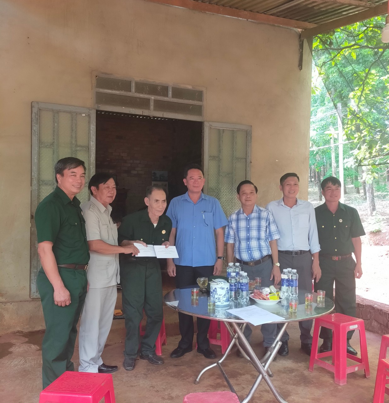 Đại tá Huỳnh Văn Nước, Ủy viên Ban Chấp hành Hội Cựu chiến binh Việt Nam, Chủ tịch Hội CCB tỉnh Bình Phước thăm, tặng quà chiến sĩ Điện Biên Lê Ích Khu, thôn 6, xã Đa Kia, huyện Bù Gia Mập.