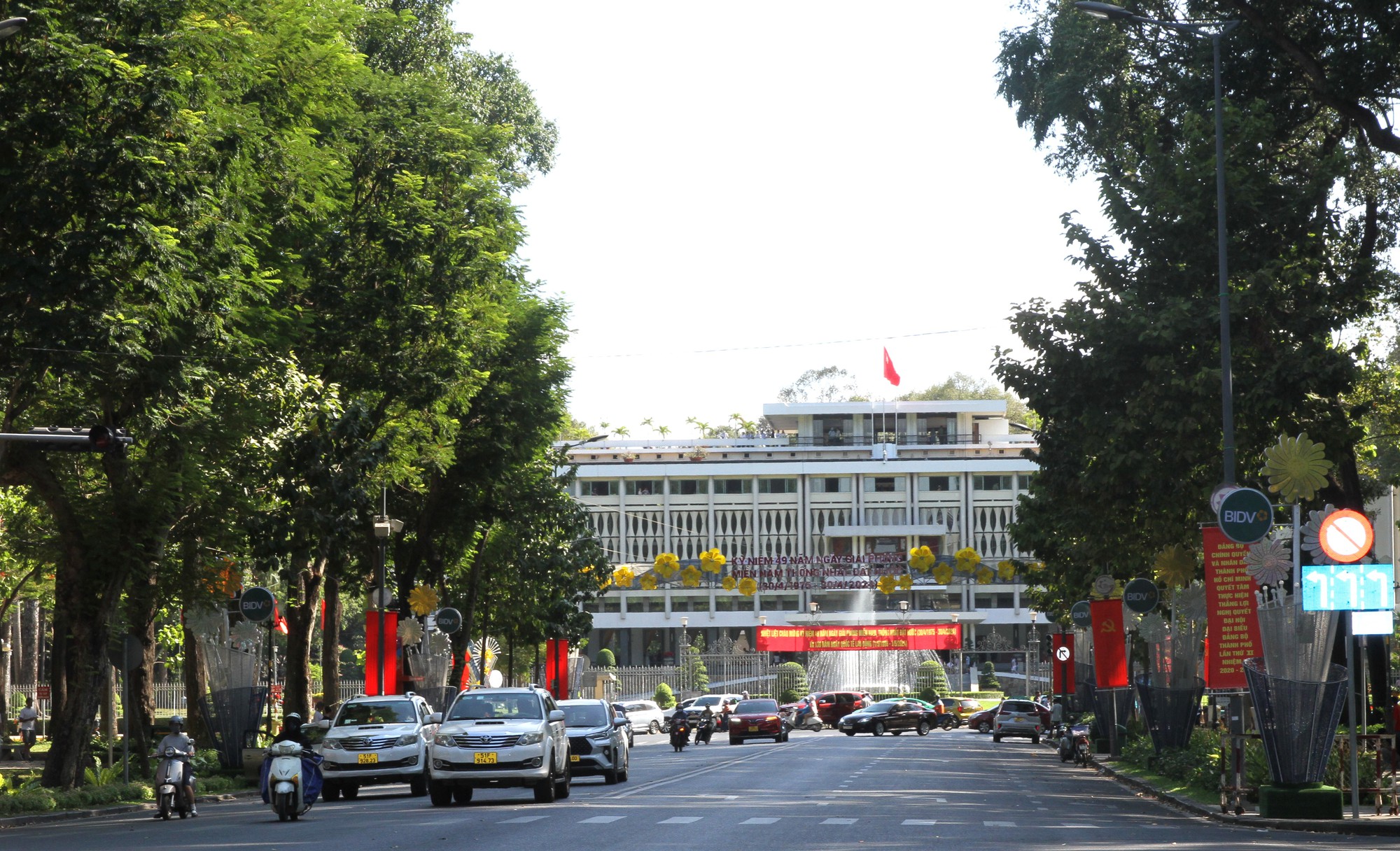 Khu vực Dinh Độc Lập rực rỡ cờ hoa chào mừng kỷ niệm 49 năm Ngày Giải phóng miền Nam.