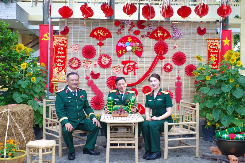 Thiếu tướng Trần Chí Tâm, Ủy viên Ban Thường vụ Đảng ủy, Phó Chính ủy Quân khu trong không gian trang trí Tết cổ truyền tại Lữ đoàn 657.