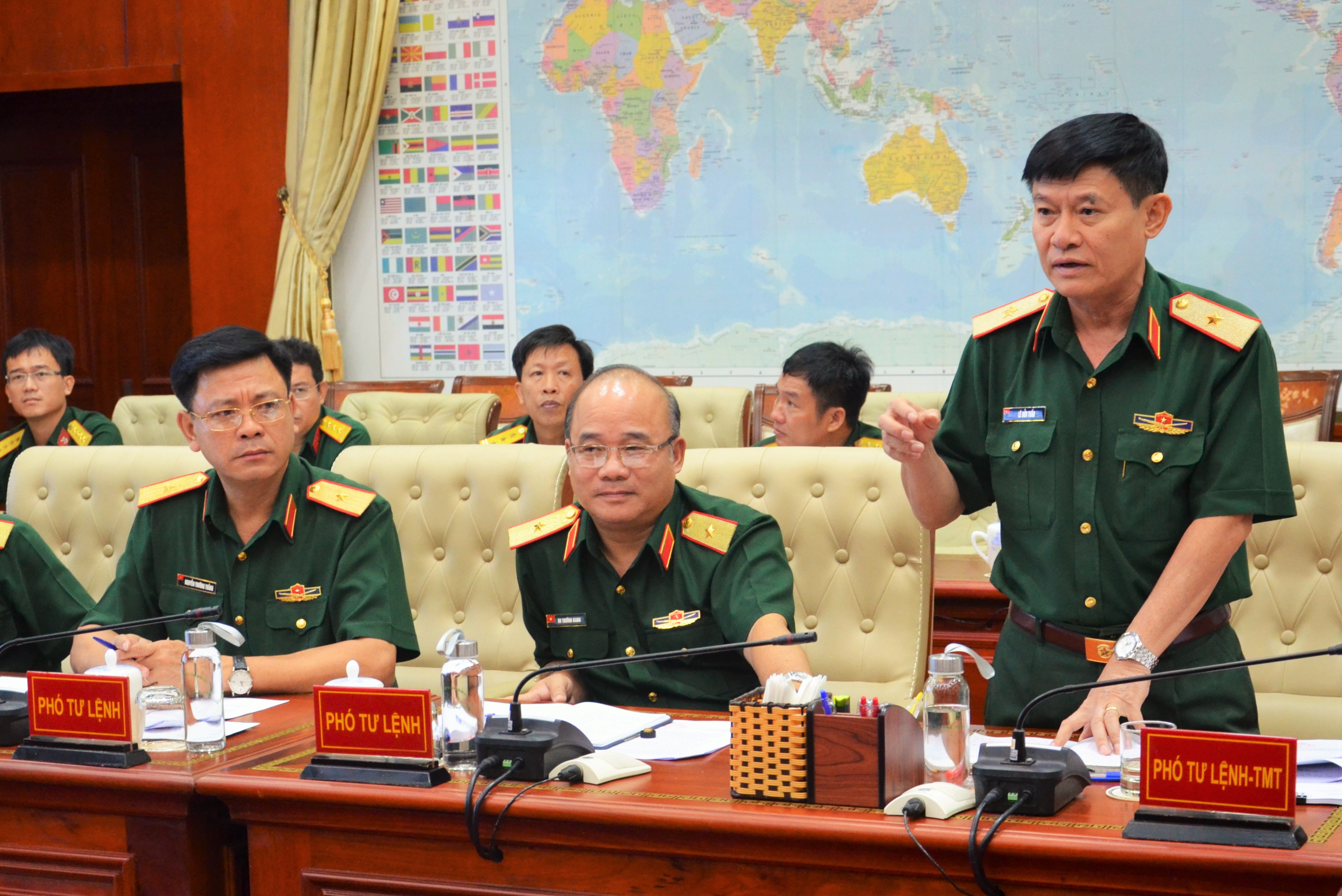 Thiếu tướng Lê Bửu Tuấn - Phó Tư lệnh - Tham mưu trưởng Quân khu phát biểu tại hội nghị.