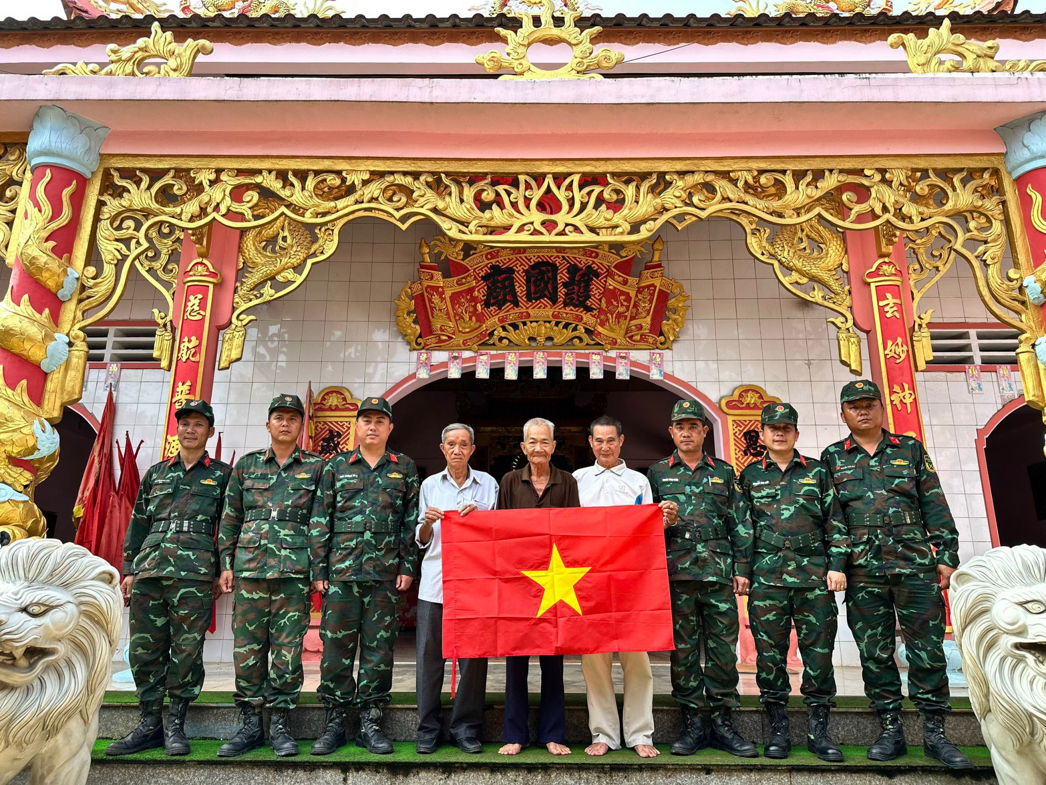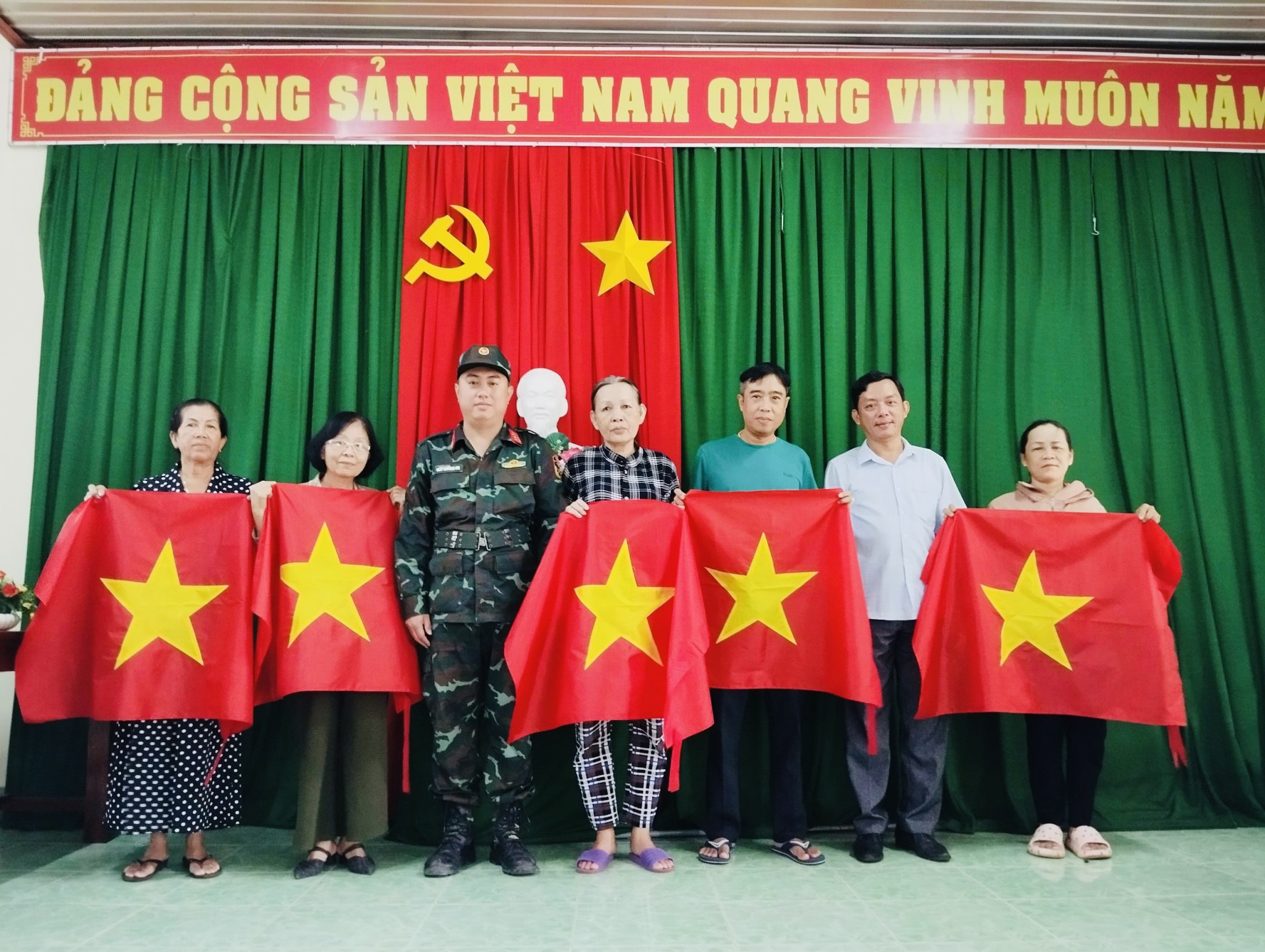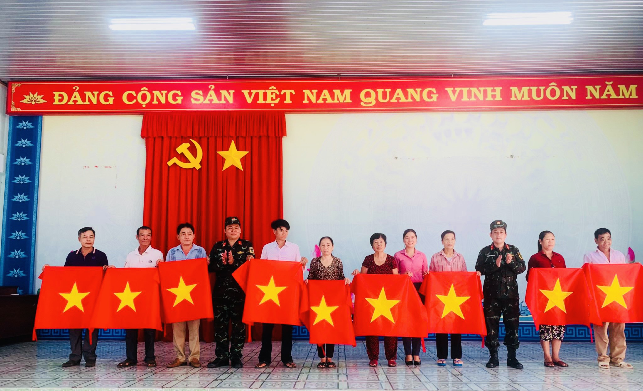 Trung đoàn Gia Định và lãnh đạo xã Xuân Quế trao cờ Tổ quốc cho các hộ dân tiêu biểu.