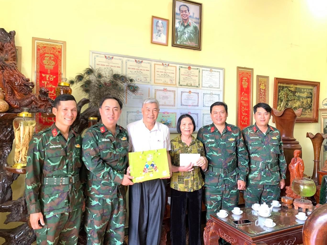 Trung tá Ngô Trường An - Phó Chính ủy Trung đoàn Gia Định tặng quà ông Đỗ Trung Kiên, sinh năm 1953, đảng viên nhận huy hiệu 50 năm tuổi Đảng.