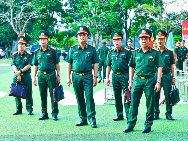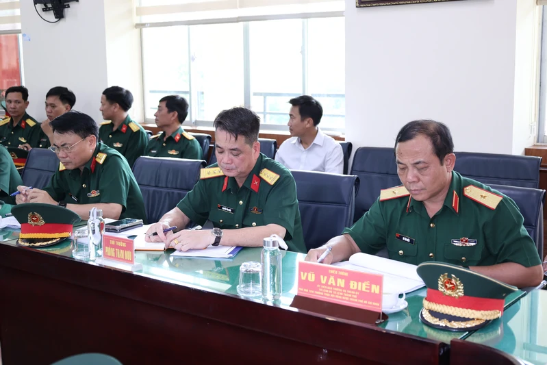 Thiếu tướng Vũ Văn Điền, Ủy viên Ban Thường vụ Thành ủy, Tư lệnh BTL Thành phố Hồ Chí Minh cùng các cơ quan Bộ Tư lệnh Thành phố dự nghe kết luận kiểm tra.