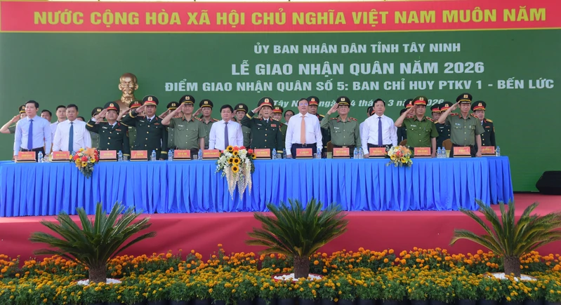 (QK7 Online) - Ngày 4/3, Ủy ban Nhân dân tỉnh Tây Ninh tổ chức Lễ giao nhận quân năm 2026. Dự lễ giao nhận quân tại điểm giao nhận quân số 5 có Thượng tướng Phạm Thế Tùng, Ủy viên Trung ương Đảng, Thứ trưởng Bộ Công an; Thượng tướng Phạm Trường Sơn, Phó Tổng Tham mưu trưởng Quân đội nhân dân Việt Nam; Thiếu tướng Lê Xuân Bình, Phó Tư lệnh, Tham mưu trưởng Quân khu 7. Tỉnh Tây Ninh dự lễ có đồng chí Nguyễn Văn Quyết, Ủy viên Trung ương Đảng, Bí thư Tỉnh ủy Tây Ninh; đồng chí Lê Văn Hẳn, Chủ tịch Ủy ban nhân dân, Chủ tịch Hội đồng nghĩa vụ quân sự tỉnh Tây Ninh.