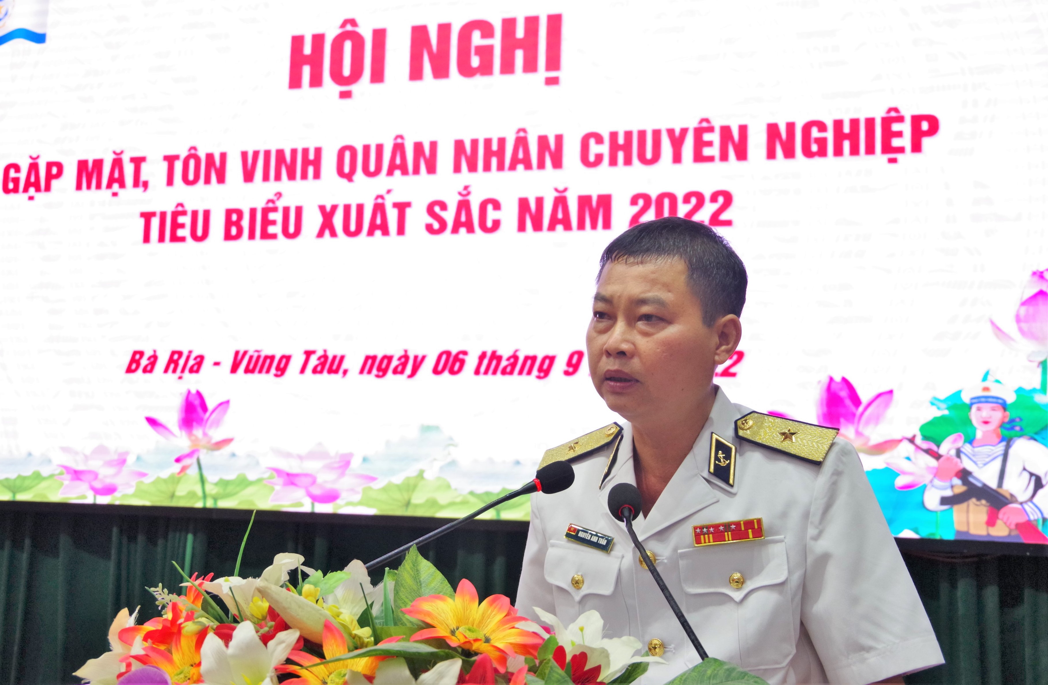(QK7 Online) - Chiều 6-9, tại TP. Vũng Tàu, tỉnh Bà Rịa-Vũng Tàu, Vùng 2 Hải quân tổ chức gặp mặt, tôn vinh quân nhân chuyên nghiệp (QNCN) tiêu biểu năm 2022. Chuẩn Đô đốc Nguyễn Anh Tuấn, Tư lệnh Vùng 2 dự và chủ trì buổi gặp mặt.