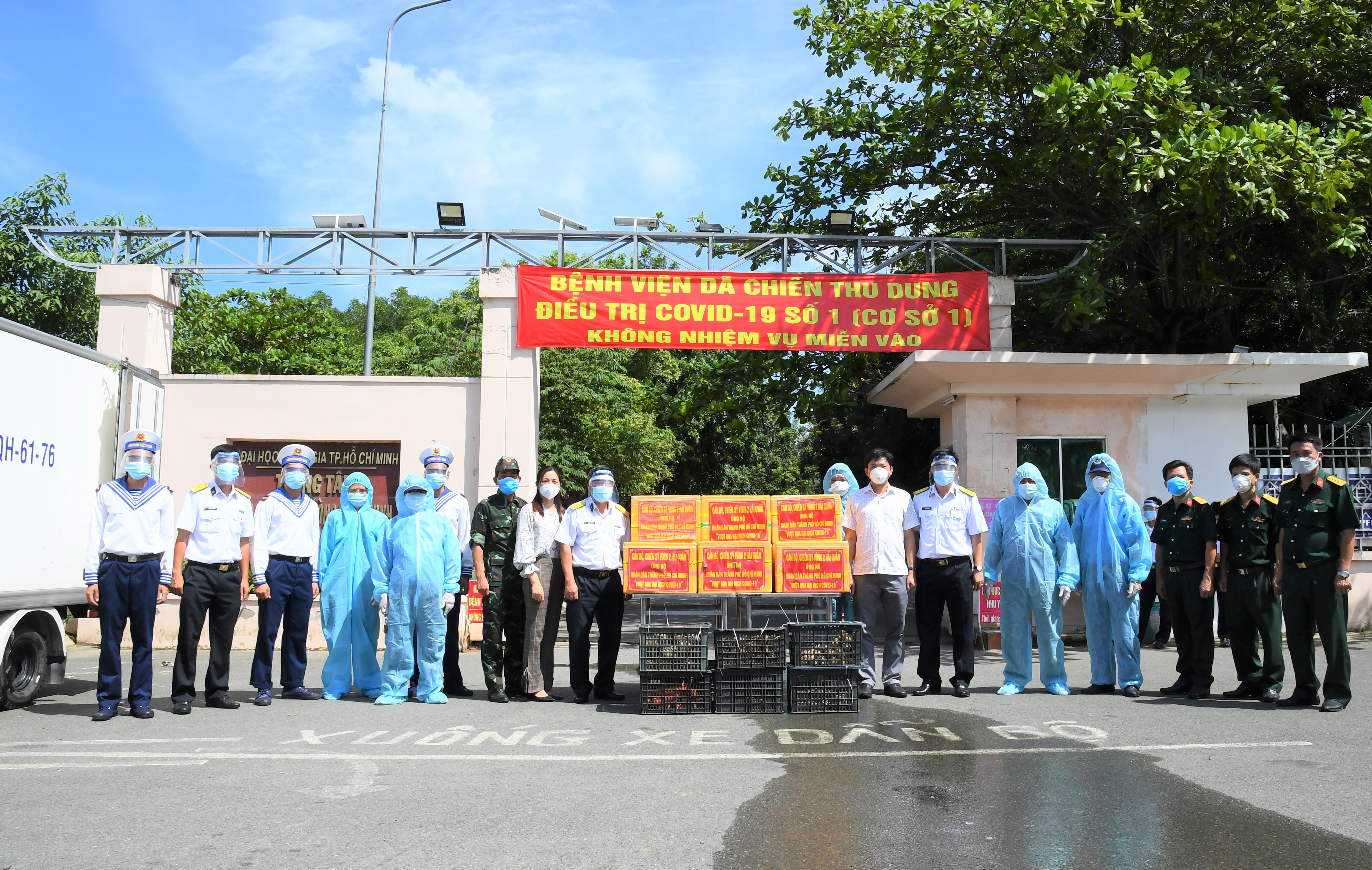 (QK7 Online) - Ngày 17/7, Đoàn công tác của Bộ Tư lệnh Vùng 2 Hải quân do Đại tá Hoàng Minh Dũng, Phó Chủ nhiệm Chính trị Vùng làm trưởng đoàn đến trao tặng thực phẩm cho Bệnh viện Dã chiến thu dung điều trị Covid -19 số 1 của TP.HCM tại Trung tâm giáo dục Quốc phòng và An ninh, Đại học Quốc gia TP.HCM tại xã Đông Hòa, thị xã Dĩ An, tỉnh Bình Dương.